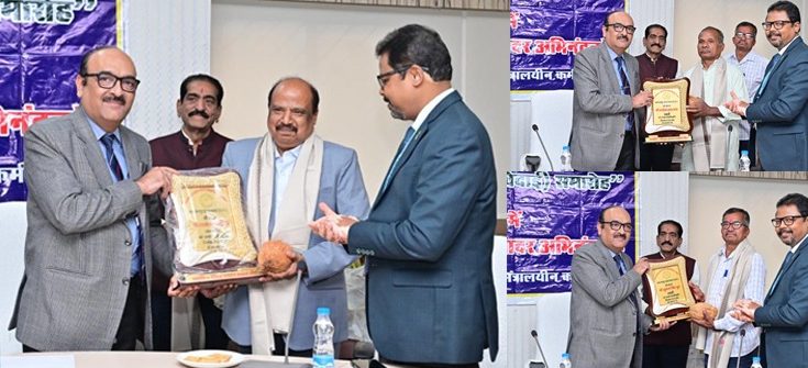 रायपुर, 30 जनवरी 2026 :छत्तीसगढ़ मंत्रालय (महानदी भवन) में आज मुख्य सचिव कार्यालय के अवर सचिव श्री अरुण कुमार हिंगवे, सामान्य प्रशासन विभाग के दफ़्तरी श्री खुमान सिंह ध्रुव एवं श्री कन्हैया लाल सोम के सेवानिवृत्त होने पर मंत्रालय में गरिमामय एवं भावभीनी विदाई समारोह का आयोजन किया गया।