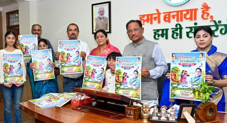 रायपुर, 04 फ़रवरी 2026 / विश्व आर्द्रभूमि दिवस के अवसर पर बीते दिनों मुख्यमंत्री श्री विष्णु देव साय ने मुख्यमंत्री निवास में ‘वुमेन फॉर वेटलैण्ड्स ’ अभियान के पोस्टर का अनावरण किया,इस अवसर पर मुख्यमंत्री ने प्रदेश में आर्द्रभूमि एवं प्राकृतिक जल-स्रोतों के संरक्षण हेतु चलाए जा रहे इस अभियान की सराहना की। मुख्यमंत्री श्री साय ने कहा कि जल ही जीवन है और आर्द्रभूमियां मानव सभ्यता की अमूल्य धरोहर हैं। उन्होंने कहा कि प्रदेश की मातृशक्ति को इस पवित्र अभियान से जोड़ना पर्यावरण संरक्षण की दिशा में प्रेरणादायी कदम है।