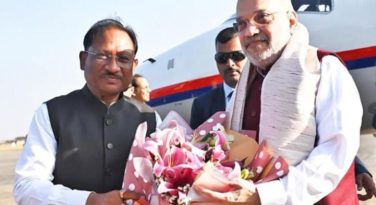 रायपुर, 7 फरवरी 2026 : केंद्रीय गृह एवं सहकारिता मंत्री श्री अमित शाह आज तीन दिवसीय छत्तीसगढ़ दौरे पर रायपुर पहुंचे। स्वामी विवेकानंद एयरपोर्ट पर मुख्यमंत्री श्री विष्णु देव साय के नेतृत्व में जनप्रतिनिधियों एवं वरिष्ठ प्रशासनिक अधिकारियों ने आत्मीय स्वागत किया।