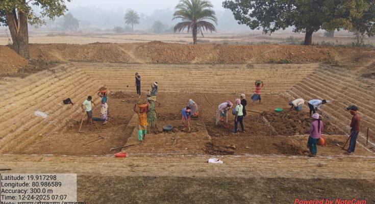 रायपुर 10 फरवरी 2026/ छत्तीसगढ़ में जल संरक्षण, ग्रामीण रोजगार और सतत आजीविका को सुदृढ़ करने के उद्देश्य से ‘मोर गांव मोर पानी’ महाअभियान के अंतर्गत महात्मा गांधी राष्ट्रीय ग्रामीण रोजगार गारंटी योजना (मनरेगा) के तहत आजीविका डबरी (फार्म पोंड) निर्माण का विशेष अभियान संचालित किया जा रहा है। इस अभिनव पहल के अंतर्गत प्रदेशभर में 10,000 से अधिक आजीविका डबरी का निर्माण कार्य प्रगति पर है। यह कार्य समाज के सबसे कमजोर वर्ग के हितग्राहियों की निजी भूमि पर किया जा रहा है, जिससे एक ओर वर्षा जल संरक्षण सुनिश्चित हो रहा है, वहीं दूसरी ओर दीर्घकालीन एवं टिकाऊ आजीविका के अवसर सृजित किए जा रहे हैं।