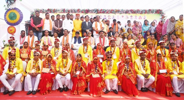 रायपुर, 10 फरवरी 2026 : आज मुख्यमंत्री कन्या विवाह योजना के अंतर्गत सामाजिक रिती-रिवाजों और अभुतपूर्व उत्साह के साथ कबीरधाम जिले के 272 जोड़े एक साथ सात फेरे लेकर अटूट बंधन में बंध गए। इस पावन अवसर पर मुख्यमंत्री श्री विष्णुदेव साय वर्चुअल माध्यम से जुड़कर नवविवाहित जोड़ों को आशीर्वाद प्रदान किया।