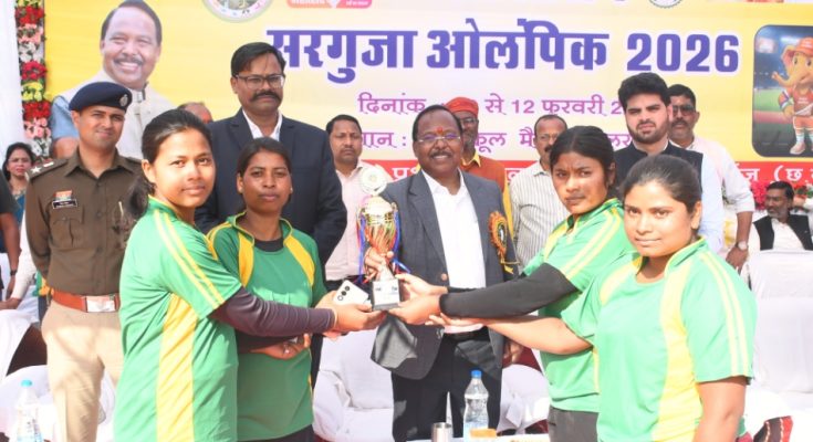 रायपुर, 13 फरवरी 2026 : आदिम जाति विकास मंत्री श्री रामविचार नेताम गुरूवार को तीन दिवसीय जिला स्तरीय सरगुजा ओलंपिक के समापन समारोह हुए। समारोह स्थानीय स्वामी आत्मानंद हिन्दी माध्यम विद्यालय के खेल मैदान में संपन्न हुआ। 10 से 12 फरवरी 2026 तक आयोजित इस तीन दिवसीय इस खेल महोत्सव ने ग्रामीण और शहरी अंचलों के खिलाड़ियों ने अपने प्रतिभाओं प्रदर्शन किया।
