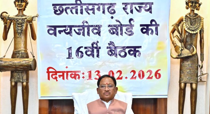 रायपुर, 13 फरवरी 2026 :मुख्यमंत्री श्री विष्णु देव साय की अध्यक्षता में आज मुख्यमंत्री निवास कार्यालय में छत्तीसगढ़ राज्य वन्यजीव बोर्ड की 16वीं बैठक आयोजित हुई। बैठक में बोर्ड की 15वीं बैठक के पालन प्रतिवेदन तथा नवीन एजेंडों पर चर्चा उपरांत प्रस्तावों को राष्ट्रीय वन्यजीव बोर्ड के निर्णय हेतु प्रेषित करने पर सहमति बनी।