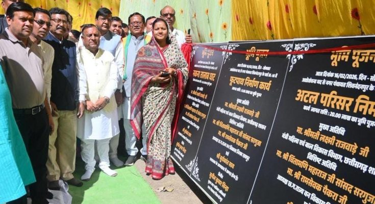 रायपुर, 16 फरवरी 2026 : प्रदेश में संतुलित एवं समावेशी विकास को गति देने की दिशा में राज्य सरकार द्वारा अधोसंरचना सुदृढ़ीकरण के कार्य निरंतर जारी हैं। इसी क्रम में महिला एवं बाल विकास और समाज कल्याण मंत्री तथा भटगांव विधायक श्रीमती लक्ष्मी राजवाड़े ने सूरजपुर जिले के भटगांव विधानसभा क्षेत्र अंतर्गत लगभग 18.38 करोड़ रुपए की लागत से स्वीकृत विभिन्न विकास कार्यों का विधिवत भूमिपूजन एवं प्रारंभ पूजन किया।