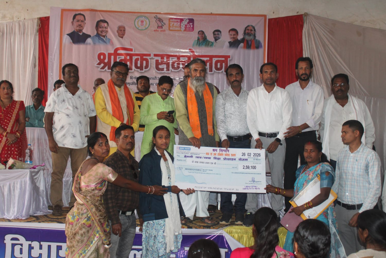 रायपुर , 26 फरवरी 2026 : छत्तीसगढ़ शासन श्रम विभाग के निर्देशानुसार श्रमिक सम्मेलन-2026 का आयोजन उत्तर बस्तर कांकेर जिले के सामुदायिक भवन अंतागढ़ में किया गया। इस अवसर पर मुख्य अतिथि के रूप में लोकसभा क्षेत्र कांकेर के सांसद श्री भोजराज नाग उपस्थित थे तथा कार्यक्रम की अध्यक्षता नगर पंचायत अंतागढ़ के अध्यक्ष श्री राधेलाल नाग द्वारा की गई। कार्यक्रम में छत्तीसगढ़ भवन एवं अन्य सन्निर्माण कर्मकार कल्याण मंडल एवं छत्तीसगढ़ असंगठित कर्मकार राज्य सामाजिक सुरक्षा मंडल के अन्तर्गत विभिन्न जन कल्याणकारी योजनाओं से जिले के श्रमिक व उनके परिवार के सदस्यों को डायरेक्ट बेनिफिट ट्रांसफर (डी.बी.टी.) के माध्यम से राशि हस्तांतरित कर लाभान्वित किया गया।