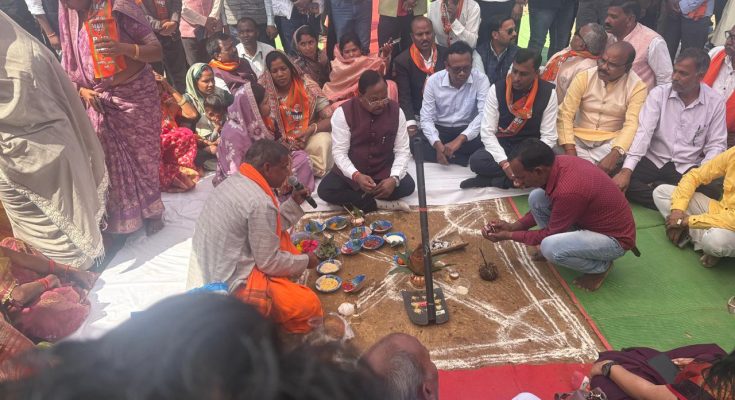 रायपुर,02 मार्च 2026 : छत्तीसगढ़ के कृषि मंत्री श्री राम विचार नेताम ने आज धोन्धा प्रतापपुर में बहुप्रतीक्षित कृषि महाविद्यालय का विधिवत भूमि पूजन संपन्न किया। उनके द्वारा आज 889.53 लाख राशि से निर्मित होने वाले कृषि महाविद्यालय भवन प्रतापपुर (धोन्धा) व 602.10 लाख से निर्मित होने वाले बालक एवं कन्या छात्रावास भवन प्रतापपुर (धोन्धा) का भूमि पूजन किया गया।