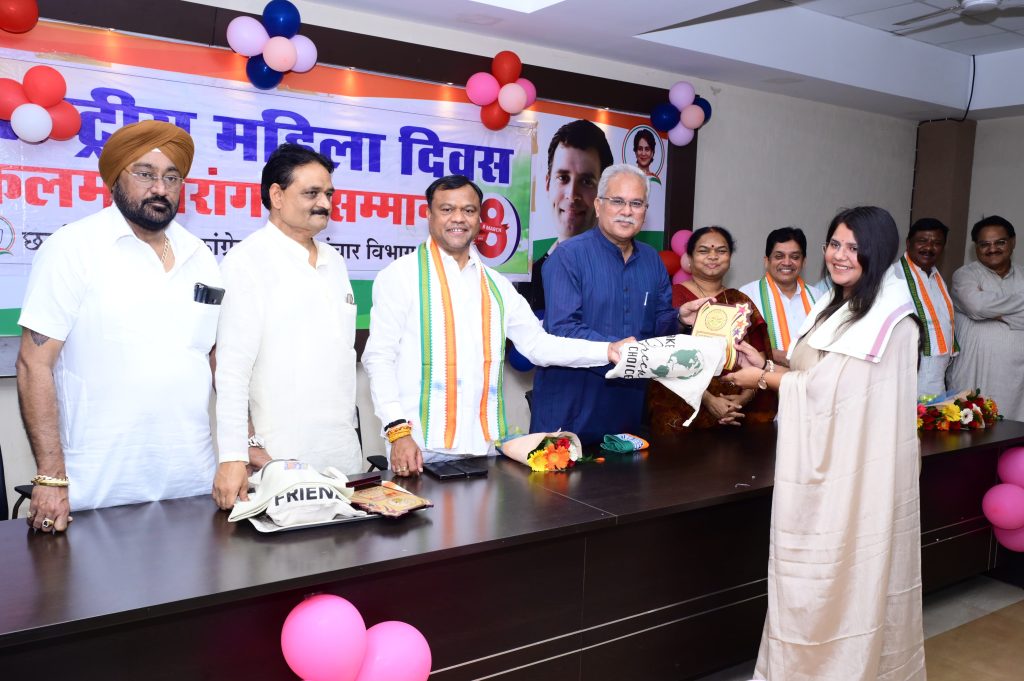रायपुर/08 मार्च 2026। अंतर्राष्ट्रीय महिला दिवस के पूर्व मीडिया के क्षेत्र में काम करने वाली महिला पत्रकारों का सम्मान कांग्रेस संचार विभाग द्वारा आयोजित किया गया। इस अवसर पर कांग्रेस के राष्ट्रीय महासचिव भूपेश बघेल, प्रदेश कांग्रेस अध्यक्ष दीपक बैज, राज्य सभा सदस्य फूलोदेवी नेताम, पूर्व मंत्री डॉ. शिव कुमार डहरिया, प्रभारी महामंत्री मलकीत सिंह गैदू, प्रदेश कांग्रेस संचार विभाग अध्यक्ष सुशील आनंद शुक्ला ने शाल एवं मोमेंटो देकर महिला पत्रकार बहनों का सम्मान किया।