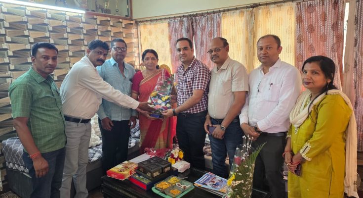 रायपुर – नवनिर्वाचित राज्य सभा सदस्य रायपुर खमतराई निवासी श्रीमती लक्ष्मी वर्मा को रायपुर नगर पालिक निगम जोन 1 के अधिकारियों ने उनके निवास स्थान पर पहुंचकर बुके प्रदत्त कर निर्वाचन हेतु हार्दिक शुभकामनाएं दी है। राज्य सभा सदस्य निर्वाचित होने पर श्रीमती लक्ष्मी वर्मा को नगर निगम जोन 1 जोन कमिश्नर श्री अंशुल शर्मा सीनियर ने कार्यपालन अभियंता श्री द्रोणी कुमार पैकरा, सहायक अभियंता श्री शरद देशमुख, जोन स्वास्थ्य अधिकारी श्री खेमलाल देवांगन सहित जोन 1 अधिकारियों के साथ बुके प्रदत्त कर हार्दिक शुभकामनाएं दी ।