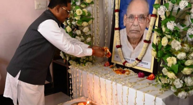 रायपुर, 15 मार्च 2026 : मुख्यमंत्री श्री विष्णुदेव साय रविवार को आज रामानुजगंज पहुंचे उन्होंने श्री ओमप्रकाश जायसवाल के पिताजी स्व. जागेश्वर प्रसाद जायसवाल के निधन पर उन्हें पुष्पांजलि अर्पित कर भावपूर्ण श्रद्धांजलि दी और दिवंगत आत्मा की शांति के लिए ईश्वर से प्रार्थना की। उन्होंने परिजनों से मिलकर उन्हें सांत्वना दी। ज्ञातव्य है कि विगत 05 मार्च 2026 को श्री जागेश्वर प्रसाद जायसवाल का निधन हो गया था।