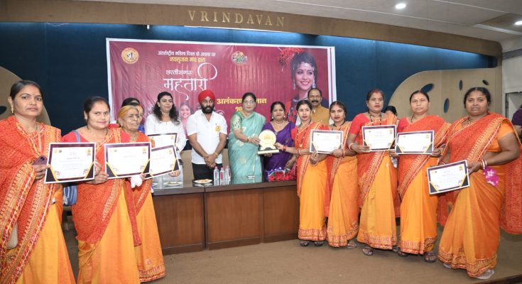 रायपुर। प्रदेश की प्रतिष्ठित सामाजिक संस्था नवसृजन मंच द्वारा अंतर्राष्ट्रीय महिला दिवस के अवसर पर विभिन्न क्षेत्रों में उत्कृष्ट कार्य करने वाली 65 महिलाओं को छत्तीसगढ़ महतारी अलंकरण सम्मान से सम्मानित किया गया। इसके साथ ही समाज में उल्लेखनीय योगदान देने वाले 12 स्वसहायता समूहों को भी महतारी गौरव सम्मान प्रदान कर सम्मानित किया गया।