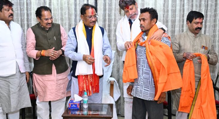 रायपुर। मुख्यमंत्री विष्णुदेव साय व भाजपा प्रदेश अध्यक्ष किरण देव के गरियामय उपस्थिति में पूर्व प्रदेश अध्यक्ष व वरिष्ठ विधायक विक्रम उसेंडी के नेतृत्व में कांकेर जिले के सुदूर गांव आलपरस, गुंदूर के ग्रामीणों ने भाजपा प्रवेश कर विकसित गांव-विकसित प्रदेश के संकल्प को और मजबूत करने का प्रण लिया। इस दौरान मुख्यमंत्री श्री विष्णुदेव साय से ग्रामीणों ने चर्चा करते हुए कहा कि नियद नेल्लानार योजना हम सबके जीवन को बदलने वाला एक महत्वकांक्षी अभियान है। जिससे प्रभावित होकर हम सबने भाजपा प्रवेश का संकल्प लिया है। इस मौके पर मुख्यमंत्री विष्णुदेव साय ने कहा कि आप सबके लिए हम जन कल्याणकारी योजनाओं का संचालन लगातार कर रहे हैं। यही कारण है कि जनता के बीच सरकार के प्रति विश्वास और बढ़ रहा है। आप सबका भाजपा परिवार में स्वागत है।