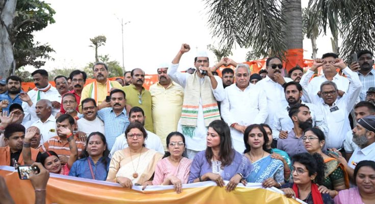 भिलाई: भिलाई बचाओ आंदोालन के द्वितीय चरण के तहत भिलाई नगर विधायक देवेन्द्र समेत टाउनशिपवासियों ने बीएसपी सेल प्रबंधन के खिलाफ सिविक सेंटर पार्किंग से 25 मिलियन सेक्टर-5 चैक तक 1000 कदम की मौन पदयात्रा की। 24 दिसंबर 2025 को बीएसपी प्रबंधन के अधिकारियों से हुई चर्चा अनुसार लोंगों की हित से जु़ड़े हुए विषयों को लेकर कलेक्टर के नाम ज्ञापन सौंपा गया। विधायक ने बीएसपी प्रबंधन को चेतावनी देते हुए कहा कि यदि 30 दिन के अंदर प्रबंधन जनहित में निर्णय नहीं लेता है,तो इस्पात भवन का घेराव करने से पीछे नहीं हटेंगे।