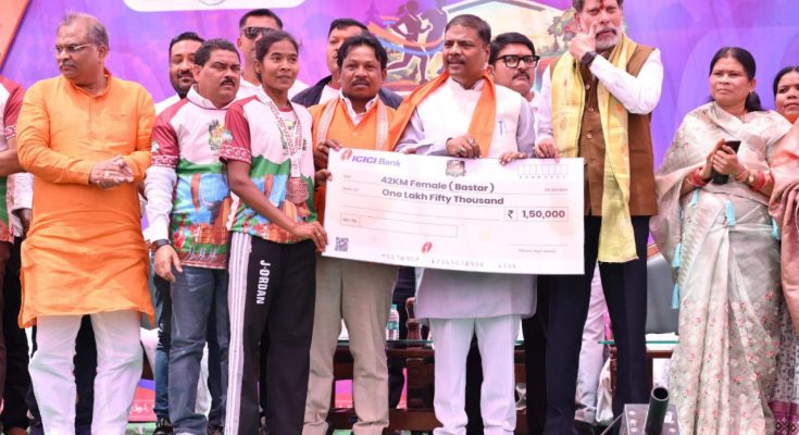 रायपुर, 23 मार्च 2026 : बस्तर की माटी की बेटियों ने एक बार फिर साबित कर दिया है कि यदि हौसला बुलंद हो और लक्ष्य के प्रति समर्पण हो, तो कोई भी बाधा राह नहीं रोक सकती। हाल ही में आयोजित ‘बस्तर हेरिटेज मैराथन’ में कुसुम ने अपनी अद्भुत खेल क्षमता और अदम्य साहस का परिचय देते हुए 42 किलोमीटर की फुल मैराथन में प्रथम स्थान हासिल कर पूरे क्षेत्र का नाम गौरवान्वित किया है। कुसुम ने यह चुनौतीपूर्ण दूरी मात्र 3 घंटे 18 मिनट और 43 सेकंड में पूरी कर अपनी श्रेष्ठता सिद्ध की। उनकी इस सफलता के पीछे महीनों का कड़ा अभ्यास और खुद को साबित करने की एक लंबी जद्दोजहद छिपी है।