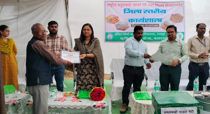 उप संचालक कृषि श्री रामचंद्र भगत ने फसल चक्र एवं विविधिकरण के महत्व पर प्रकाश डालते हुए कहा कि इससे उत्पादन लागत कम होती है तथा जलवायु परिवर्तन के प्रभावों को भी कम किया जा सकता है। कृषि विज्ञान केन्द्र के प्रमुख डॉ. जी. के. निगम ने बताया कि मधुमक्खी पालन एक लाभकारी व्यवसाय है, जिसे कम पूंजी और सीमित श्रम में शुरू किया जा सकता है। उन्होंने कहा कि प्रदेश की जलवायु इस व्यवसाय के लिए अनुकूल है, जिससे लघु एवं सीमांत किसानों को आय का बेहतर विकल्प मिल सकता है।