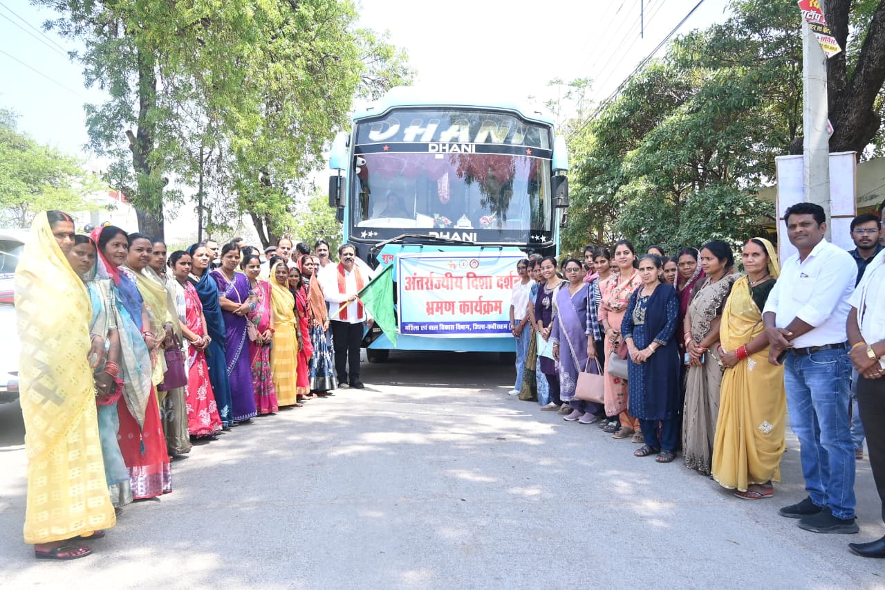 रायपुर, 28 मार्च 2026/ उपमुख्यमंत्री और कवर्धा विधायक श्री विजय शर्मा ने महिला सशक्तिकरण को बढ़ावा देने की दिशा में अहम पहल करते हुए जिला कबीरधाम में आयोजित अंतर्राज्यीय दिशा दर्शन भ्रमण कार्यक्रम के तहत समूह की महिलाओं के बस को हरी झंडी दिखाकर मंडला, बिछिया और जबलपुर के लिए रवाना किया।
