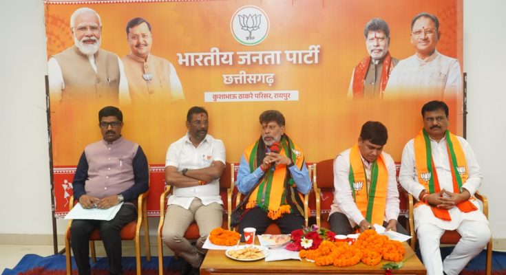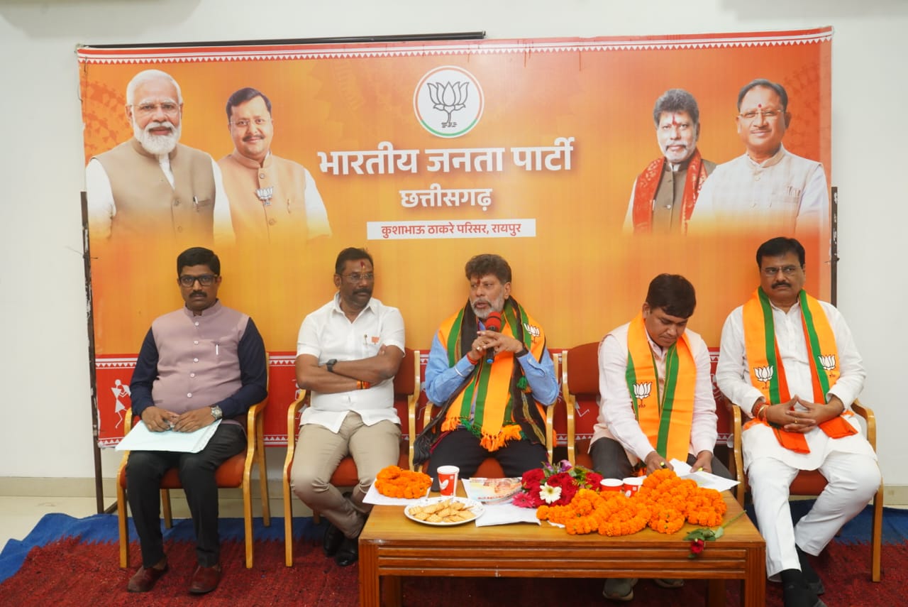रायपुर। भाजपा प्रदेश कार्यालय कुशाभाऊ ठाकरे परिसर में भाजपा झुग्गी झोपडी प्रकोष्ठ के प्रदेश पदाधिकारियों की बैठक भाजपा प्रदेश अध्यक्ष किरण सिंह देव जी की गरिमामयी उपस्थिति में सम्पन्न हुआ। सर्वप्रथम डॉ श्यामा प्रसाद मुखर्जी, पं. दिनदयाल उपाध्याय जी व भारत माता के तैल्य चित्र पर माल्यार्पण व दीप प्रज्जवलित कर बैठक प्रारंभ की गई। तत्पश्चात अतिथियों का स्वागत कर प्रदेश पदाधिकारियों का परिचय किया गया।