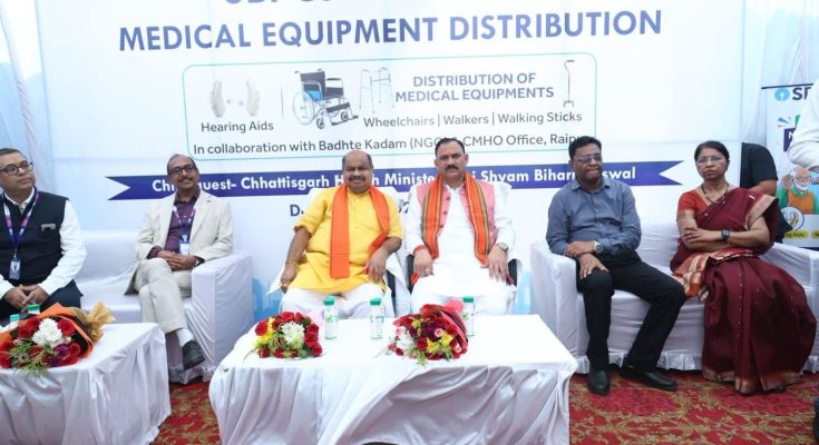 रायपुर- रायपुर के जिला अस्पताल में आज भारतीय स्टेट बैंक (SBI) द्वारा कॉर्पोरेट सामाजिक उत्तरदायित्व (CSR) के अंतर्गत आयोजित चिकित्सा उपकरण वितरण कार्यक्रम में उत्तर विधानसभा क्षेत्र के लोकप्रिय विधायक श्री पुरन्दर मिश्रा जी ने प्रदेश के स्वास्थ्य मंत्री श्री श्याम बिहारी जायसवाल जी के साथ गरिमामयी उपस्थिति दर्ज कराई।