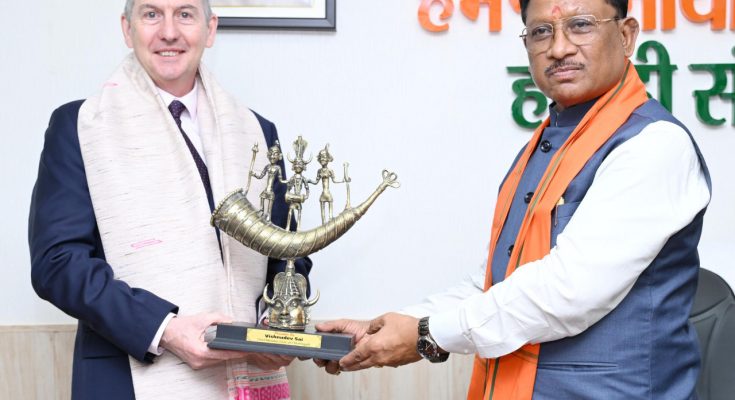 रायपुर, 06 अप्रैल 2026 : मुख्यमंत्री श्री विष्णु देव साय से आज राजधानी रायपुर स्थित मुख्यमंत्री निवास में ऑस्ट्रेलिया के महावाणिज्य दूत बर्नार्ड लिंच ने सौजन्य मुलाकात की।