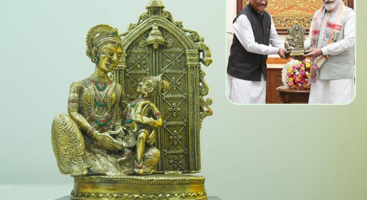 रायपुर, 7 अप्रैल 2026 : मुख्यमंत्री श्री विष्णुदेव साय ने नई दिल्ली में प्रधानमंत्री श्री नरेंद्र मोदी से मुलाकात के दौरान छत्तीसगढ़ की समृद्ध जनजातीय परंपरा और सांस्कृतिक पहचान को दर्शाती बेल मेटल से निर्मित ‘माता कौशल्या के राम’ की अद्वितीय कलाकृति भेंट की।