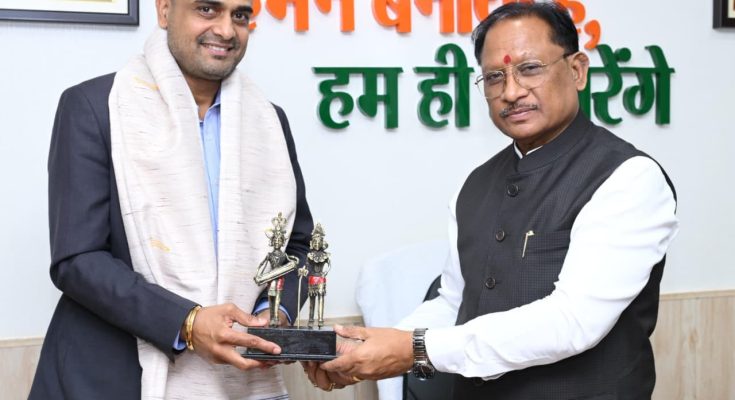मुख्यमंत्री श्री विष्णु देव साय से आज राजधानी रायपुर स्थित मुख्यमंत्री निवास कार्यालय में गूगल फॉर एजुकेशन इंडिया के प्रमुख श्री संजय जैन एवं गूगल इंडिया के पब्लिक पॉलिसी प्रमुख श्री राजेश रंजन ने सौजन्य मुलाकात की। मुख्यमंत्री श्री साय ने अतिथियों का पारंपरिक सम्मान करते हुए उन्हें शॉल एवं बस्तर कला की प्रतिकृति भेंट की। ।