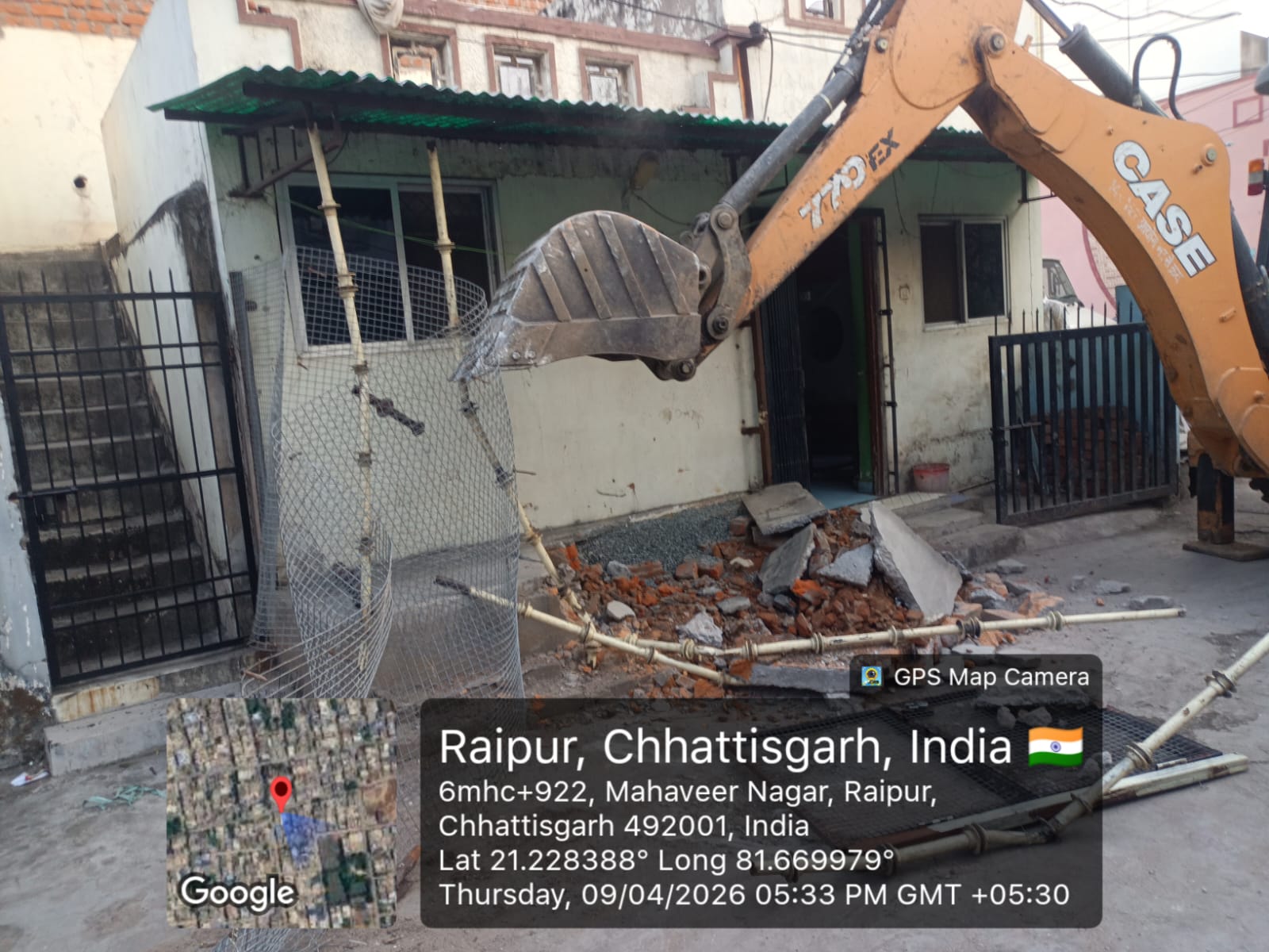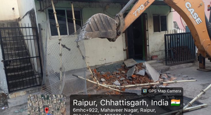 पंडित विद्याचरण शुक्ल वार्ड 50 अंतर्गत महावीर नगर मे आलोक जैन द्वारा किए गए अवैध शेड निर्माण को हटाया गया.