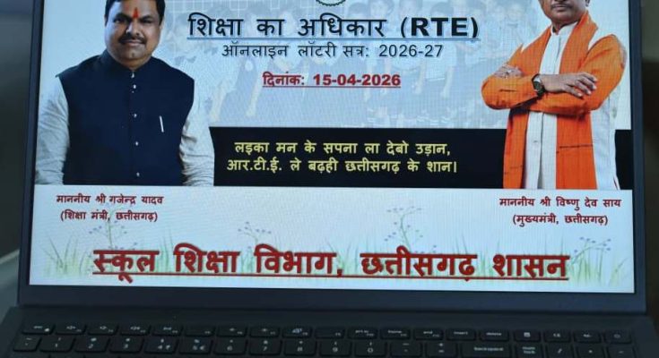 रायपुर, 15 अप्रैल 2026 : छत्तीसगढ़ शासन के स्कूल शिक्षा विभाग द्वारा आज दिनांक 15 अप्रैल 2026 को पूर्व निर्धारित समय-सारणी के अनुसार आर.टी.ई. अंतर्गत निजी विद्यालयों में प्रवेश हेतु प्राप्त आवेदनों की चयन सूची ऑनलाइन लॉटरी के माध्यम से मंत्रालय महानदी भवन के मुख्यमंत्री कक्ष से जारी की गई। यह प्रक्रिया मुख्यमंत्री, छत्तीसगढ़ शासन द्वारा शिक्षा मंत्री की उपस्थिति में सम्पन्न कराई गई। इस अवसर पर तकनीकी शिक्षा मंत्री श्री गुरु खुशवंत साहेब, स्कूल शिक्षा विभाग के सचिव श्री सिद्धार्थ कोमल परदेशी , उपसंचालक लोक शिक्षण श्री अशोक नारायण बंजारा ,आर टी ई प्रभारी श्री महेश नायक सहित अन्य वरिष्ठ अधिकारी उपस्थित रहे।