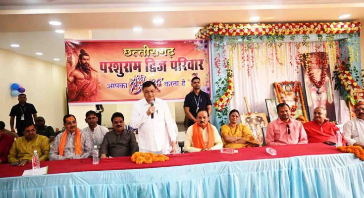 रायपुर, 19 अप्रैल 2026 : प्रदेश के उद्योग, श्रम, आबकारी व सार्वजनिक उपक्रम मंत्री श्री लखनलाल देवांगन एवं महापौर श्रीमती संजूदेवी राजपूत आज कोरबा में परशुराम द्विज परिवार व सर्वब्राम्हण समाज द्वारा आयोजित भगवान परशुराम जयंती समारोह में पहुंचे, दोनों समाज के नवनिर्मित भवनों का लोकार्पण किया तथा समाज के लोगों की मांग पर अनेकों सौगात प्रदान की, उन्होने भगवान परशुराम जी की जयंती की अपनी हार्दिक शुभकामनायें व बधाई समाज के लोगों को दी तथा उनके आशीर्वाद की कामना की। इस मौके पर सभापति श्री नूतन सिंह ठाकुर व पार्षद नरेन्द्र देवांगन सहित जनप्रतिनिधिगण व समाज के लोग उपस्थित थे।