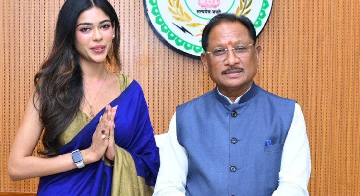 रायपुर, 30 अप्रैल 2026 : मुख्यमंत्री श्री विष्णुदेव साय से आज विधानसभा में मिस इंडिया छत्तीसगढ़ 2026 सुश्री अनुष्का सोन ने सौजन्य मुलाकात की। इस अवसर पर सुश्री अनुष्का ने मुख्यमंत्री को नारी सशक्तिकरण की दिशा में किए जा रहे प्रयासों के लिए धन्यवाद देते हुए कहा कि महिलाओं के सम्मान और अधिकारों को लेकर विशेष सत्र आयोजित करना एक प्रेरणादायक पहल है। उन्होंने कहा कि इससे समाज में सकारात्मक संदेश जाता है और महिलाओं को अपने अधिकारों के प्रति जागरूक होने की प्रेरणा मिलती है।